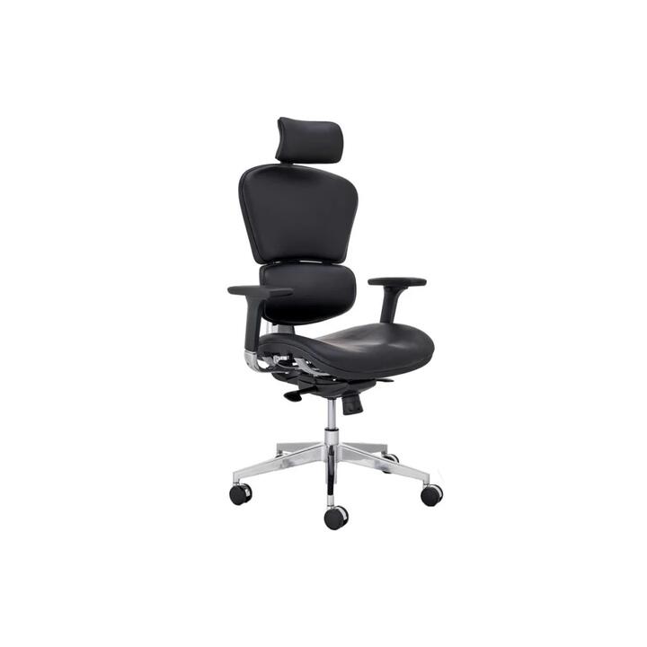This chair has a sturdy build and is made with genuine leather. It also has a strong aluminium base, lumbar and back support, and an adjustable tilt locking and gas height lift mechanism. It has a weight capacity of up to 220kg. Note:- Actual product colours may vary due to lighting, studio photography, room conditions, different screens on various devices. – All our furniture product are flat pack (assembly required) for safe handling purposes.