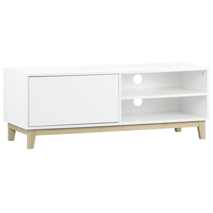 The Freja entertainment unit is a sleek modern scandi design that will compliment any home interior. Featuring open shelving and storage compartment on classic metal drawer runners provides sufficient storage for all your home decor and accessories. The white laminated finish and natural pinewood legs provides a modern scandi look to your home interior. This item will give your living space a beautifully presented modern day classic look. Features:, Particle Board with White Laminated finish, Includes 12 – 15mm PB board Construction, Pinewood base frame and Legs, Maximum Table Top weight Capacity 20kg, evenly distributed, Maximum shelf weight capacity 5kg, 2 x Internal open storage shelves, 1 x storage drawer, Classic white metal drawer runners, Overall Dimensions:, Width: 120cm, Depth: 40cm, Height: 45cm, Internal Drawer Dimensions:, Width: 57cm, Internal Width: 52.7cm, Internal Depth: 30cm, Front Panel Height: 29.5cm, Internal Height: 12.3cm, Internal Shelf Dimensions:, Width: 57.6cm, Depth: 38cm, Height per Shelf: 14.2cm, Floor to base of unit: 12cm Colour – White Package Contents: 1 x Entertainment Unit. Note:- Actual product colours may vary due to lighting, studio photography, room conditions, different screens on various devices. – All our furniture product are flat pack (assembly required) for safe handling purposes.
