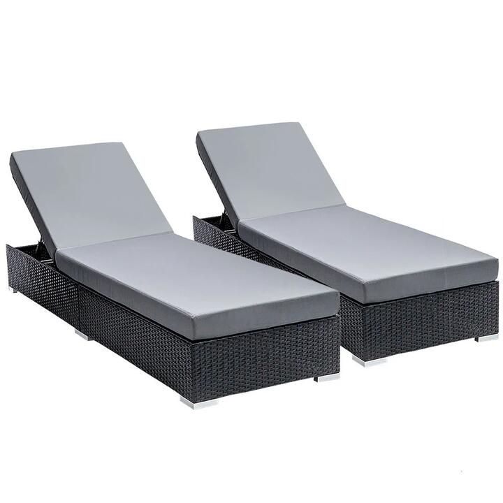 Bask in the summer glow with this sun lounge. Crafted from durable, weather-resistant materials, it ensures many seasons of relaxation. Its uncomplicated, relaxed design invites you to immerse in the sun's embrace, it's your go-to spot for sunbathing, reading, or simply unwinding. Here's to endless summer moments and serene relaxation. Make every sunbeam count!, Features UV-resistant frame with water-resistant cushion Heavy duty aluminium frame 4 adjustable backrest settings Comes with 8cm thick high density foam seat cushion Removable and washable cushion cover Complimentary with three cover sets – Beige, Grey, Red Galvanised and anti-slip plastic feet Can be a fully flat bed, Specifications: Frame material: Aluminium and PE wicker Cushion cover material: Polyester fabric Frame colour: Black Seat cushion colour: Beige/Grey/ Red Seat cushion thickness: 8cm Adjustable backrest position:4 Lounge max. weight capacity: 120kg Overall dimensions: 185cm x 60cm x 28cm Assembly required: Yes No. of package: 2, Package Content (1) Gardeon Wicker Sun Lounge x2 (2) Seat Cushion x2 (3) Cushion Cover Set x6 (4) Assembly Manual x2, This product comes with 1 year warranty. Note:- Actual product colours may vary due to lighting, studio photography, room conditions, different screens on various devices. – All our furniture product are flat pack (assembly required) for safe handling purposes.