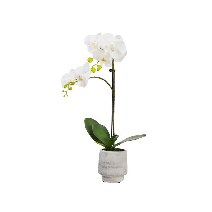 This artificial orchid arrangement features pure white petals hovering above dark green leaves. Sporting an elegant look, this ornament will bring color and life to your home or office space. With its design, you can settle this piece on your built-in wall shelf alongside your picture frames, metal lantern, or tea lights for a dramatic statement. Features, Perfectly made with polyester, plastic, wire, and concrete for an additional style and design, Features an elegant artificial plant suitable as a decorative piece for any living space, Showcases a botanically accurate plant which provides a beautiful burst of greenery to your home, Designed with an interior quality look perfect for styling any indoor space area within your home, Comes with a classic and concrete pot which gives it a more stylish look and design, Dimensions, W 28 x D 28 x H 52 cm, Dispatch Timing, Normally dispatched within 3 business days, Notes. Note:- Actual product colours may vary due to lighting, studio photography, room conditions, different screens on various devices.