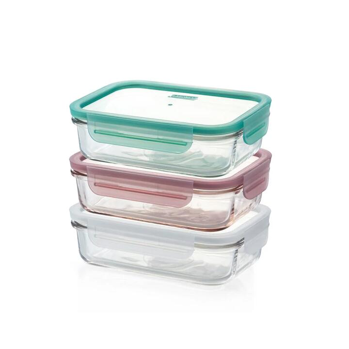 Experience ultimate kitchen convenience with the Glasslock 3 Piece Tempered Glass Set. Crafted from durable, BPA-free tempered glass, these containers ensure longevity and safety. Stain and odour-resistant, they effortlessly maintain the freshness of the food stored within. The top-rack dishwasher-safe feature adds practicality to your busy lifestyle. Secure your meals with food-safe, silicone-sealed lids, preserving flavours and textures. Including three containers, choose from a set of 400ml or 700ml capacities for versatile storage. With microwave safe (without lid), top rack dishwasher safe, and temperature resistant from -20°C to 120°C, these containers adapt to your every culinary need. Effortless access is guaranteed with snap-lock lids, while the eco-conscious, 100% recyclable design makes the Glasslock 3 Piece Tempered Glass Set a sustainable storage choice. Features Durable BPA-free tempered glass construction Stain and odor-resistant for long-lasting freshness Top-rack dishwasher safe for easy cleaning Food-safe, silicone-sealed lids for air and liquid-tight storage Set includes three containers in a choice of 400ml or 700ml capacities microwave safe (without lid), top rack dishwasher safe, and temperature resistant from -20°C to 120°C for versatile use Eco-conscious design, 100% recyclable for a sustainable choice Material Tempered Glass Dimensions 400ml Set: 16 x 11 x 15cm 700ml Set: 18 x 12.5 x 19.5cm Capacity 400ml 700ml What Am I Buying 3 x Rectangular Food Containers