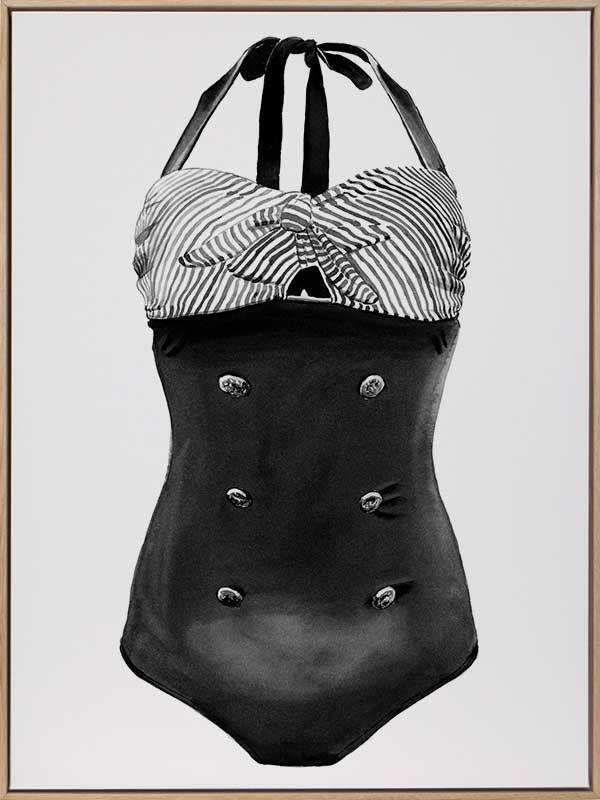Greta Canvas Art Print: A detailed black and white watercolour illustration of a vintage inspired bathing suit. 2017 SPRING/SUMMER COLLECTION: RHAPSODY Disclaimer: Colours of Urban Road products may vary due to device display differences, monitor settings, inherent product variations, lighting conditions, and screen calibration. While we strive for accuracy, slight variations may occur. For any concerns, contact our customer support. Your satisfaction is our priority. STRETCHED CANVAS Urban Road's stretched canvas fine art prints are professionally printed on polycotton artist canvas, using archival inks and then stretched and gallery wrapped. This means the image is stretched around a 38mm frame to create a seamless, museum-quality finish. All stretched and box framed art prints arrive ready to hang. SHADOW BOX FRAMES We also offer the option to add a shadow box frame to your Urban Road canvas art print. A little different from a traditional framed print, the canvas sits within the box frame with a 5mm gap, creating a sophisticated shadow effect between the frame and the canvas. Our solid timber box frame mouldings are 10mm wide, and 55mm deep, and add approximately 40mm to the length and height of the listed canvas size. ROLLED CANVAS ART At Urban Road, we also offer you the option to purchase your canvas art print unframed to allow you to have it framed your own way. As with our stretched and box framed canvas products, our rolled canvas prints are professionally printed on durable, museum-quality, matte coated polycotton canvas and made to order. Our rolled canvas products are printed to the listed stretched size, and come with an additional 45mm mirrored edge plus another 60mm white border to allow for gallery wrapping.