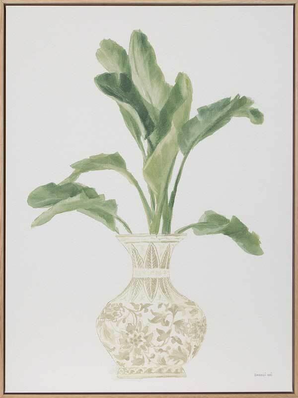 Hamptons Holiday I Canvas Art Print – The epitome of Hamptons style, this warm still-life artwork features an arrangement of banana palm fronds in a sepia-toned ginger jar. Matches with Hamptons Holiday II, III and IV. Disclaimer: Colours of Urban Road products may vary due to device display differences, monitor settings, inherent product variations, lighting conditions, and screen calibration. While we strive for accuracy, slight variations may occur. For any concerns, contact our customer support. Your satisfaction is our priority. STRETCHED CANVAS Urban Road's stretched canvas fine art prints are professionally printed on polycotton artist canvas, using archival inks and then stretched and gallery wrapped. This means the image is stretched around a 38mm frame to create a seamless, museum-quality finish. All stretched and box framed art prints arrive ready to hang. SHADOW BOX FRAMES We also offer the option to add a shadow box frame to your Urban Road canvas art print. A little different from a traditional framed print, the canvas sits within the box frame with a 5mm gap, creating a sophisticated shadow effect between the frame and the canvas. Our solid timber box frame mouldings are 10mm wide, and 55mm deep, and add approximately 40mm to the length and height of the listed canvas size. ROLLED CANVAS ART At Urban Road, we also offer you the option to purchase your canvas art print unframed to allow you to have it framed your own way. As with our stretched and box framed canvas products, our rolled canvas prints are professionally printed on durable, museum-quality, matte coated polycotton canvas and made to order. Our rolled canvas products are printed to the listed stretched size, and come with an additional 45mm mirrored edge plus another 60mm white border to allow for gallery wrapping.