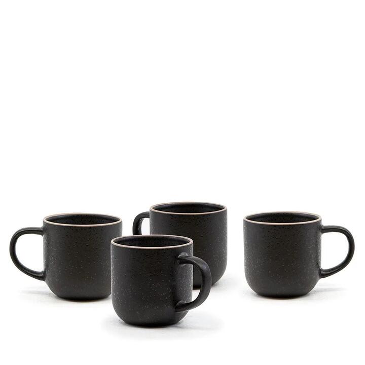 Kick back at home with a serving of your favourite flavour tea using the stylish Hana 4 Piece Stoneware Mug Set by Salt & Pepper! Crafted from premium quality stoneware, this mug set is designed for enduring appeal and lasting durability. They each hold a generous capacity of 380ml and are ideal for enjoying a piping hot chocolate, tea or coffee. Decorated with an elegant reactive glaze finish, the Hana mugs by Salt & Pepper bring a touch of glamour to your everyday coffee indulgence. They boast an elegant sleek black colour scheme that coordinates well with any existing drinkware and looks fantastic atop of any coffee table. Ultra-durable and easy to clean, the Hana mugs are dishwasher safe for your convenience. Mix and match with additional pieces from the Hana range by Salt & Pepper for the ultimate coordinated dinnerware and drinkware collection. Features• A contemporary four piece set, ideal for upgrading your drinkware collection!• Crafted from premium quality stoneware for long lasting durabiltiy and timeless appeal• Each mug holds a generous capacity of 380ml, ideal for enjoying an indulgent serving of tea, coffee or hot chocolate!• Decorated with an elegant rezctive glaze finish, bringing a touch of glamour to your morning coffee ritual• Elegant solid black colour scheme coordinates well with any existing drinkware and looks great atop of any coffee table• Utlra-durable and easy to clean, this set is dishwasher and microwave safe for your convenience• Presented beautifully boxed and makes a delightful gift for housewarmings, birthdays and other special occasionsDimensions12.5 x 9 x 8.5cm