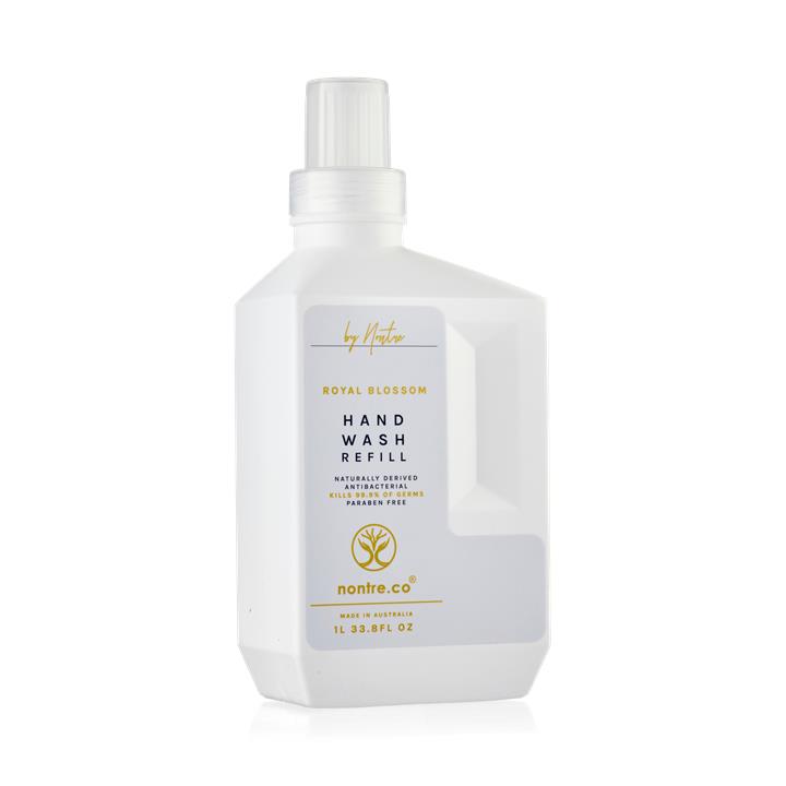 Refill, reuse, reduce. Our 1L refill bottle ensures you never run out of your favourite hand wash! Cleanse your hands whilst you enjoy the captivating blend of Palmarosa, Wild Cyclamen and Exotic White Blossom in this exquisite hand wash, leaving your senses rejuvenated and enriched. Why use nontre's Royal Blossom Hand Wash Refill? Gently and effectively cleanses hands without dehydrating Paraben Free Luxurious aroma of Palmarosa, Cyclamen & White Blossom Easy to use – simply pour from the bottle into your 300mL or 500mL empty bottle Specifications Quantity: 1 x 1L refill bottle of Royal Blossom Hand Wash Ingredients Water (Aqua), Sodium Laureth Sulfate, Glycerin, Cocamidopropyl Betaine, Lactic Acid, Decyl Glucoside, Sodium Benzoate, Potassium Sorbate, Parfum, EDTA, Sodium Chloride, Hexyl Cinnamal, Butylphenyl Methylpropional, Limonene, Linalool. Fragrance Sweet aroma with a unique blend of Palmarosa and wild Cyclamen. This premium and rejuvenating fragrance will leave your senses enriched, with delicate afternotes of Rose and exotic White Blossom. Top Note: Exotic White Blossom Middle Note: Palmarosa Base Notes: Cyclamen