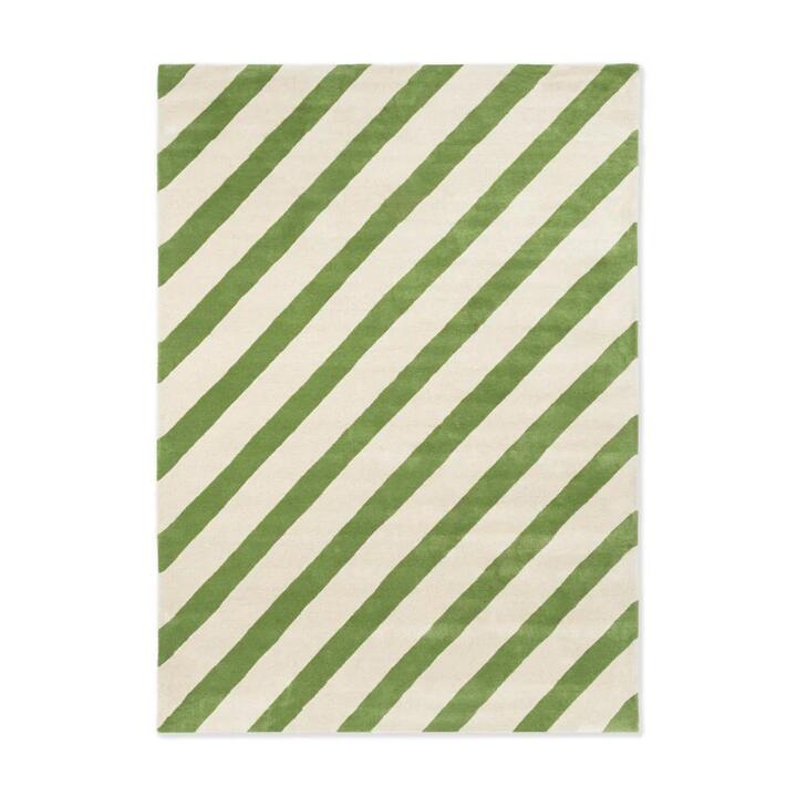 This Paper Straw hand tufted rug sings with the joy of pattern and colour. Featuring delightfully striped diagonals set in a peridot colourway in creams and greens. Enveloping interiors with joyous colour confidence, Sophie Robinson x Harlequin translates a vibrant range of nature-inspired designs into bold rug creations. Inspired by the woodland garden of Sophies countryside home, this rug adds a lively touch to any space. Features • Contemporary Feel • Made from 100% Pure New Wool • Available in 4 to fit into any room of your home or office • Hand Tufted – Pile height 17mm • Made in India • Please note: Allow for a slight variation of colours depending on monitor settings. • We recommend that an anti-slip pad such as Total Grip is used underneath rugs to prevent slippage between the rug and the surface it is placed on. Delivery Note This item is Made to Order with an estimated delivery time of 3 – 4 weeks. This item cannot be delivered to a PO Box, only to a street address – a return fee will be charged if rugs are sent to a PO Box. What Am I Buying 1 x Rug Materials 100% Pure New Wool Dimensions• 200 x 140cm • 240 x 170cm • 280 x 200cm • 350 x 250cm