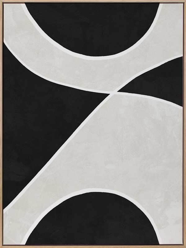 Helix Canvas Art Print: A minimalistic artwork that contrasts geometric black and white shapes. Companion piece to Ellipse. 2018 AUTUMN/WINTER COLLECTION: CONTINUUM Disclaimer: Colours of Urban Road products may vary due to device display differences, monitor settings, inherent product variations, lighting conditions, and screen calibration. While we strive for accuracy, slight variations may occur. For any concerns, contact our customer support. Your satisfaction is our priority. STRETCHED CANVAS Urban Road's stretched canvas fine art prints are professionally printed on polycotton artist canvas, using archival inks and then stretched and gallery wrapped. This means the image is stretched around a 38mm frame to create a seamless, museum-quality finish. All stretched and box framed art prints arrive ready to hang. SHADOW BOX FRAMES We also offer the option to add a shadow box frame to your Urban Road canvas art print. A little different from a traditional framed print, the canvas sits within the box frame with a 5mm gap, creating a sophisticated shadow effect between the frame and the canvas. Our solid timber box frame mouldings are 10mm wide, and 55mm deep, and add approximately 40mm to the length and height of the listed canvas size. ROLLED CANVAS ART At Urban Road, we also offer you the option to purchase your canvas art print unframed to allow you to have it framed your own way. As with our stretched and box framed canvas products, our rolled canvas prints are professionally printed on durable, museum-quality, matte coated polycotton canvas and made to order. Our rolled canvas products are printed to the listed stretched size, and come with an additional 45mm mirrored edge plus another 60mm white border to allow for gallery wrapping.