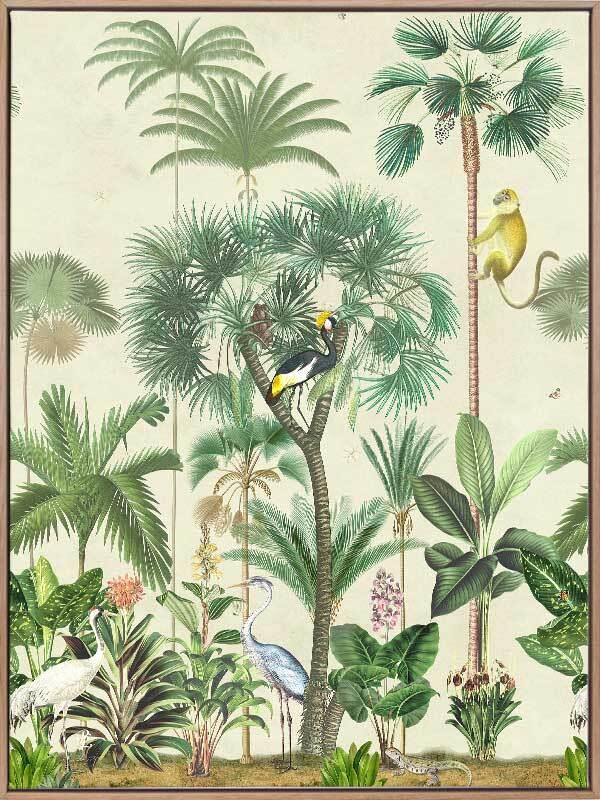 Indian Summer Beige I Canvas Art Print – Inspired by humid Indian Summers, this intricate piece is a conversation-starter for any space. All the animals are out to play, hidden amongst the tropical plants on a hot, misty morning, insects buzzing at every turn. With the pale beige background and forest green foliage, this piece creates all the tropical vibes you need to escape to a holiday getaway for endless hot, summer afternoons. Bethany Linz brings her timeless touch to Urban Road, with incredibly intricate, detailed pieces inspired by exotic wildlife and plant life. Bethany is known for her exquisitely hand painted art that's transformed into various textiles, creating an overall vintage look and feel. Many of the pieces in this collection are inspired by Indian summers, conveying warm breezes, buzzing insects, and gorgeous Indian animal studies featuring realistic details and modest compositions. A widespread colour palette focuses on understated tones, from soft pinks, yellows and blues, to rich emerald greens, and plenty of neutral clay shades, which all incorporate beautifully with many interior design styles. Disclaimer: Colours of Urban Road products may vary due to device display differences, monitor settings, inherent product variations, lighting conditions, and screen calibration. While we strive for accuracy, slight variations may occur. For any concerns, contact our customer support. Your satisfaction is our priority. STRETCHED CANVAS Urban Road's stretched canvas fine art prints are professionally printed on polycotton artist canvas, using archival inks and then stretched and gallery wrapped. This means the image is stretched around a 38mm frame to create a seamless, museum-quality finish. All stretched and box framed art prints arrive ready to hang. SHADOW BOX FRAMES We also offer the option to add a shadow box frame to your Urban Road canvas art print. A little different from a traditional framed print, the canvas sits within the box frame with a 5mm gap, creating a sophisticated shadow effect between the frame and the canvas. Our solid timber box frame mouldings are 10mm wide, and 55mm deep, and add approximately 40mm to the length and height of the listed canvas size. ROLLED CANVAS ART At Urban Road, we also offer you the option to purchase your canvas art print unframed to allow you to have it framed your own way. As with our stretched and box framed canvas products, our rolled canvas prints are professionally printed on durable, museum-quality, matte coated polycotton canvas and made to order. Our rolled canvas products are printed to the listed stretched size, and come with an additional 45mm mirrored edge plus another 60mm white border to allow for gallery wrapping.