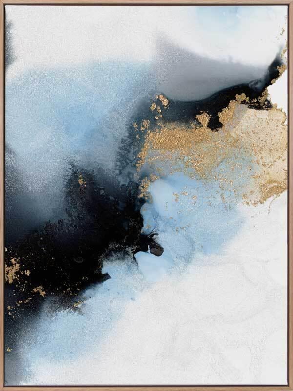 Interstellar II Canvas Art Print – An abstract artwork that features a dreamy blend of periwinkle blue, inky black and cool silver inks, accented with gold flecks. Pairs with Interstellar I. Disclaimer: Colours of Urban Road products may vary due to device display differences, monitor settings, inherent product variations, lighting conditions, and screen calibration. While we strive for accuracy, slight variations may occur. For any concerns, contact our customer support. Your satisfaction is our priority. STRETCHED CANVAS Urban Road's stretched canvas fine art prints are professionally printed on polycotton artist canvas, using archival inks and then stretched and gallery wrapped. This means the image is stretched around a 38mm frame to create a seamless, museum-quality finish. All stretched and box framed art prints arrive ready to hang. SHADOW BOX FRAMES We also offer the option to add a shadow box frame to your Urban Road canvas art print. A little different from a traditional framed print, the canvas sits within the box frame with a 5mm gap, creating a sophisticated shadow effect between the frame and the canvas. Our solid timber box frame mouldings are 10mm wide, and 55mm deep, and add approximately 40mm to the length and height of the listed canvas size. ROLLED CANVAS ART At Urban Road, we also offer you the option to purchase your canvas art print unframed to allow you to have it framed your own way. As with our stretched and box framed canvas products, our rolled canvas prints are professionally printed on durable, museum-quality, matte coated polycotton canvas and made to order. Our rolled canvas products are printed to the listed stretched size, and come with an additional 45mm mirrored edge plus another 60mm white border to allow for gallery wrapping.