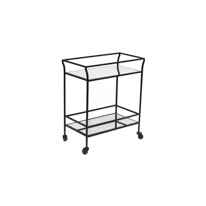 Impress your guests with a vintage-inspired bar cart that elegantly stores and displays your favourite liquors, fine glasswares and ornaments, and can be wheeled around the home while you entertain. Elegant iron and mirrored glass bar cart, 2 Shelves for storage, Iron square pipe frame, Refined silhouette, Shelves made with MDF and mirrored glass, Present your visitors with stunning cocktails and sumptuous spirits with the Jaisalmer Bar Cart that features mirrored surfaces that create beautiful reflections. Entertainment ready, Become a host with the most exciting cocktails and nightcaps with an elegant bar cart that will elevate every dinner party to a special occasion. Style it your way, Featuring two tiers of shelving with a mirrored glass finish, this bar cart can be styled any number of ways, with your favourite decorative liquor bottles, fancy glassware, cocktail shakers, plants ornaments and so much more, letting you show off your unique tastes. Dimension: D 66 x W 35 x H 78cm. Note:- Actual product colours may vary due to lighting, studio photography, room conditions, different screens on various devices. – All our furniture product are flat pack (assembly required) for safe handling purposes.