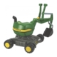 John Deere Rolly Tractor with Excavator and LoaderComes complete with frontloader that can be raised and lowered, scooped and tipped using the levers. The rear excavator can only be used when stationary with support leg down, the seat and arm can turn through 180 degrees, the control levers allow it to raise and lower scoop and tip material just like the real thing.Includes an opening bonnet and two position adjustable seat. Features pedal crank with eccentric bearing, covered integral drive chain and front loader.FeaturesRear excavator great for digging trenches and holes!Size 164cm x 53cm x 76cm (h).Weight: 15kg Suitable for ages 3+Rider Height: 105-135cmTrailer not included but can be purchased separately but the rear excavator needs to be removed when a trailer is attached.This product has a 3 year warranty covering manufacturing defects; normal wear and tear is not included.