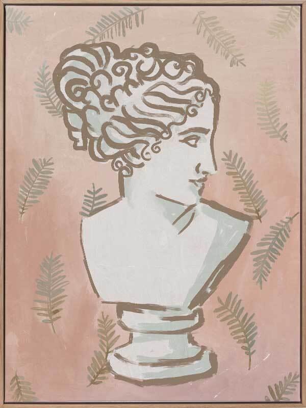 Juno Canvas Art Print – History lovers will be drawn to this soft, delicate depiction of ancient feminine beauty. This neutral illustrative artwork features a painting of a greek-style bust, against a gentle pink gradient overlaid with leaves. Disclaimer: Colours of Urban Road products may vary due to device display differences, monitor settings, inherent product variations, lighting conditions, and screen calibration. While we strive for accuracy, slight variations may occur. For any concerns, contact our customer support. Your satisfaction is our priority. STRETCHED CANVAS Urban Road's stretched canvas fine art prints are professionally printed on polycotton artist canvas, using archival inks and then stretched and gallery wrapped. This means the image is stretched around a 38mm frame to create a seamless, museum-quality finish. All stretched and box framed art prints arrive ready to hang. SHADOW BOX FRAMES We also offer the option to add a shadow box frame to your Urban Road canvas art print. A little different from a traditional framed print, the canvas sits within the box frame with a 5mm gap, creating a sophisticated shadow effect between the frame and the canvas. Our solid timber box frame mouldings are 10mm wide, and 55mm deep, and add approximately 40mm to the length and height of the listed canvas size. ROLLED CANVAS ART At Urban Road, we also offer you the option to purchase your canvas art print unframed to allow you to have it framed your own way. As with our stretched and box framed canvas products, our rolled canvas prints are professionally printed on durable, museum-quality, matte coated polycotton canvas and made to order. Our rolled canvas products are printed to the listed stretched size, and come with an additional 45mm mirrored edge plus another 60mm white border to allow for gallery wrapping.