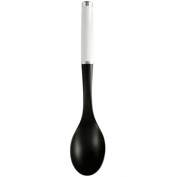 Elevate your everyday cooking with the KitchenAid Cooking Spoon, a durable and stylish utensil designed to master a variety of cooking tasks with ease. The improved ergonomic design handle is perfectly weighted for optimal comfort, balance, and control, giving it a premium feel in your hand. The durable handle also includes a debossed logo and a handy hanging loop, perfect for showcasing your kitchen utensils. Measuring 34cm, the handle is finished in a vibrant empire red colour. This spoon features an oversized surface that's great for stirring, scooping, mixing, and even serving food, ideal for favourites like curries, risotto, and hearty mixtures. The cooking spoon head is constructed from durable nylon, making it heat resistant up to 232°C (450°F) and safe to use on non-stick, so you can cook worry-free. Made with sturdy, high-quality materials, its built to withstand everyday use and is dishwasher-safe for easy cleanup. The KitchenAid Cooking Spoon is the perfect blend of performance, comfort, and durability, an essential addition to any kitchen. Features• OVERSIZED HEAD: Ideal for stirring curries, risotto and hearty mixtures, the large head offers ample surface area for efficient mixing. • HEAT RESISTANT: Nylon spoon head is heat resistant to 232°C/450°F and safe for all cookware, including non-stick. • ERGONOMIC HANDLE: Perfectly weighted durable handle for optimal comfort, balance and control, giving it a premium feel in your hand. • DURABLE: Sturdy construction, this cooking utensil is built to withstand daily cooking tasks, offering long-lasting performance and reliability in the kitchen. • DISHWASHER SAFE: Designed for hassle-free clean-up, place the cooking spoon in the dishwasher for easy maintenance after use. What Am I Buying 1 x Kitchen Spoon Materials Nylon Manufactured Made in China