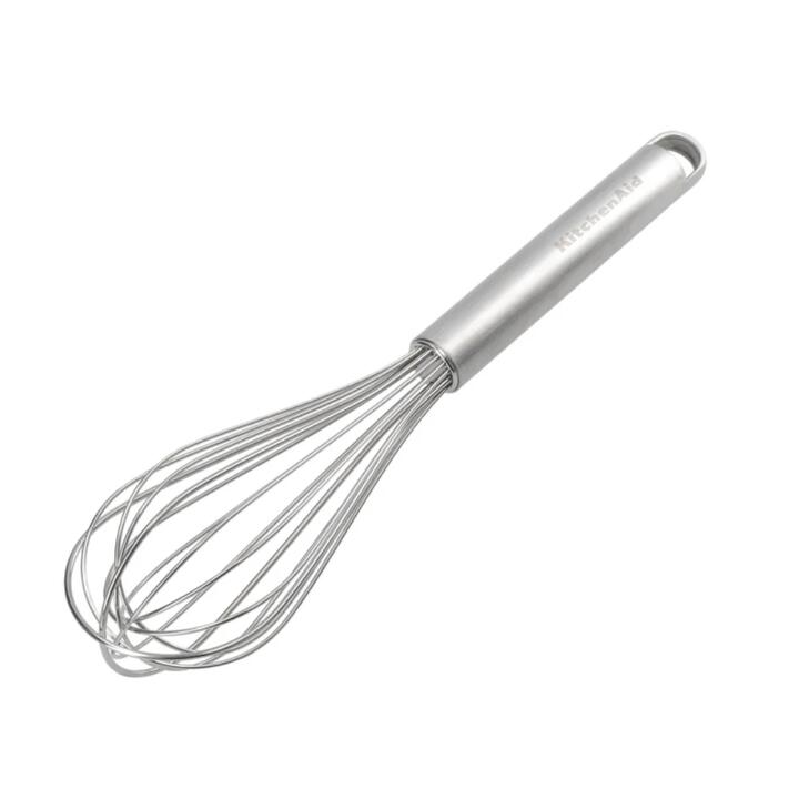 The KitchenAid Premium Stainless Steel Balloon Whisk is a kitchen essential. Use it to expertly mix, whip and aerate sauces and batters. Durable for everyday use, this tool is made from stainless steel, which also gives it a sleek, modern look. And it's dishwasher-safe for easy cleanup. Features• Use to expertly mix, whip and aerate sauces effortlessly• Made from rust-resistant stainless steel• Ergonomic handle design for smooth operation• Durable and reliable, ideal for everyday useMaterialsStainless SteelDimensions28cm x 8cm x 7cm