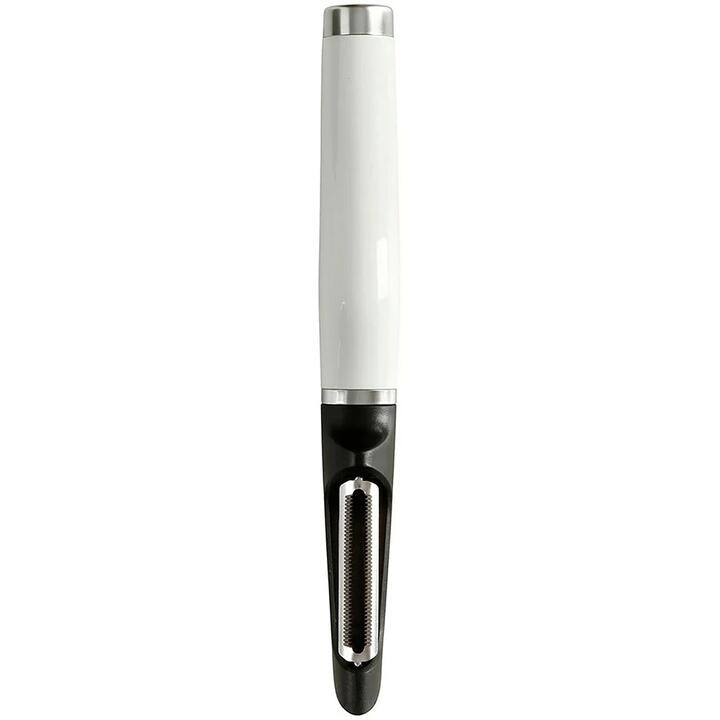 Experience effortless peeling with the KitchenAid European Peeler. Its robust swivel blade ensures smooth peeling of fruits and veggies, while a plastic guard keeps the blade protected when not in use. Constructed from premium stainless steel, the KitchenAid European Peeler guarantees durability and stellar performance. The ergonomic handle, available in glossy White or Empire Red with satin chrome accents, brings style to your kitchen, while its 100% BPA-free construction gives you peace of mind. Dishwasher safe, the KitchenAid European Peeler ensures effortless cleanup after each delightful meal. Features Features a strong swivel blade for peeling fruit and veg with ease Plastic guard keeps the blade protected Crafted from durable stainless-steel for lasting performance Stylish ergonomic handle in White or Empire Red Easy-to-clean with dishwasher-safe convenience 100% BPA-free construction MaterialStainless SteelDimensions2.49 x 2.49 x 22cmWhat Am I Buying1 x European Peeler