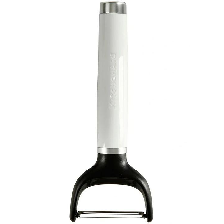 Breeze through peeling tasks with the essential KitchenAid Y-Peeler. Its robust blade effortlessly tackles fruits and veggies, while a convenient potato eye remover adds versatility. Constructed from premium stainless steel, the KitchenAid Y-Peeler guarantees durability and stellar performance. The ergonomic handle, available in glossy White or Empire Red with satin chrome accents, brings style to your kitchen, while its 100% BPA-free construction gives you peace of mind. Dishwasher safe, the KitchenAid Y-Peeler ensures effortless cleanup after each delightful meal. Features Features a strong blade for peeling fruit and veg with ease Includes a handy potato eye remover Crafted from durable stainless-steel for lasting performance Stylish ergonomic handle in White or Empire Red Easy-to-clean with dishwasher-safe convenience 100% BPA-free construction MaterialStainless SteelDimensions2.9 x 0.98 x 7.48cmWhat Am I Buying1 x Y-Peeler