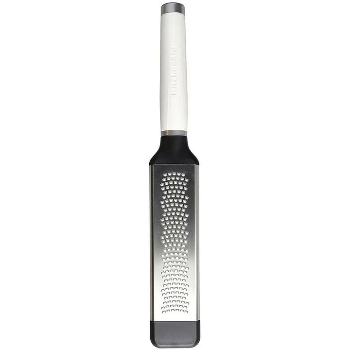 The KitchenAid Zester Grater is your kitchen companion for effortless zesting and grating. From garlic and ginger to citrus zest and chocolate, this tool handles it all and even grates in two directions for ultimate efficiency. Constructed from premium stainless steel, the KitchenAid Zester Grater guarantees durability and stellar performance. The ergonomic handle, available in glossy White or Empire Red with satin chrome accents, brings style to your kitchen, while its 100% BPA-free construction gives you peace of mind. Dishwasher safe, the KitchenAid Zester Grater ensures effortless cleanup after each delightful meal. Features Ideal for zesting garlic, ginger, citrus, chocolate and more Grate in two different directions for efficient results Crafted from durable stainless-steel for lasting performance Stylish ergonomic handle in White or Empire Red Easy-to-clean with dishwasher-safe convenience 100% BPA-free construction MaterialStainless SteelDimensions13.2 x 3 x 1cmWhat Am I Buying1 x Zester Grater