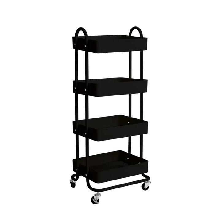 Description Stay well organized with our creative Storage Trolley. Regularly used stuff always raise a question of organization, it is simply not efficient to stack them up in a regular storage place, you do not want the chaos of unorganized essentials all over the place. To eliminate all these messy troubles, we have put together countless hours of craftsmanship to get you a product that will suit your demand and stay compact anywhere you place it. It is time you put all those piling troubles away and categorize your essential things effectively. It is made of heavy-duty stainless steel. It can easily withstand weights up to 12.5kg. With steel construction, it is highly resistant towards water and rust, no more worry if you accidentally spill liquids such as water over it. Designed to be non-toxic and odourless for safer usage. It can easily fit in tight spaces with its compact size. Provided with ample space to store all your essential stuff in one place. Built-in 360-degree rotatable wheels provide easy and convenient movability. Position it as the way you prefer. Store all your essentials neat and tidy in one place. Perfect to use in your bedroom. More than just a trolley!, Key Features:, 4-Tier ample storage, Sturdy steel frame, High load capacity, Space saving, 360° Rolling wheels (Two lockable), Smooth handle, Lightweight and portable, Simple installation, Note: Recommended wearing gloves for installation, WARNING : Children have died from furniture tipover. ALWAYS secure this furniture with an anchor device; NEVER allow children to stand, climb or hang on drawers, doors, or shelves; NEVER open more than one drawer at a time; Place heavy items down low; NEVER place a television on this furniture. Specifications Brand: Levede, Frame material: Steel, Finish: Powder-coated, Weight capacity: 50kg Total / 12.5kg Each tier, Dimension: 46cm x 35cm x 103.5cm (L x W x H), Colour: Black Package Contents, 1x Levede Storage Trolley, 1Set x Assemble Kits, 1x Instruction Manual. Note:- Actual product colours may vary due to lighting, studio photography, room conditions, different screens on various devices. – All our furniture product are flat pack (assembly required) for safe handling purposes.