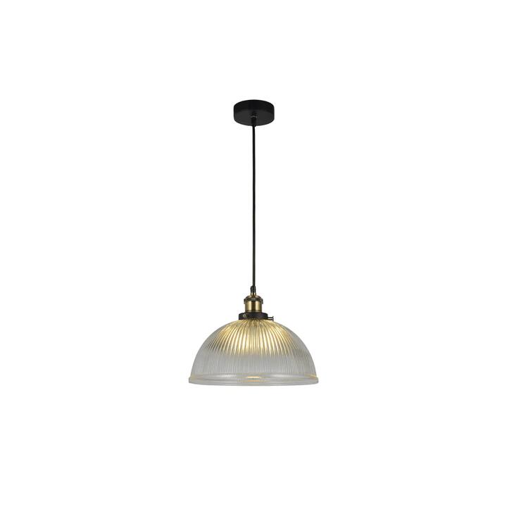 Product Description, Provide easy styling and illumination to hallways, reading nooks, or above dining tables with this elegant Livia Hanging Pendant Light. The dome-shaped glass shade diffuses bright, ambient light. The ribbed design with its long, metal holder suits any classic aesthetic. Features, This design features a ribbed, dome-shaped glass shade in classic tints, Glass shade softly diffuses light for ambient illumination, Designed for use as either a single suspension or in a series of lights above kitchen islands or statement spaces, Comes with a ceiling canopy and an adjustable 165cm suspension cable, Accommodates one (1) E27 Max 60W globe (not included), Dimensions, W 29.5cm x D 29.5cm x H 165cm, Dispatch Timing, Normally dispatched within 3 business days, Notes, This item comes with 12-Months Manufacturer Warranty. Note:- Actual product colours may vary due to lighting, studio photography, room conditions, different screens on various devices.