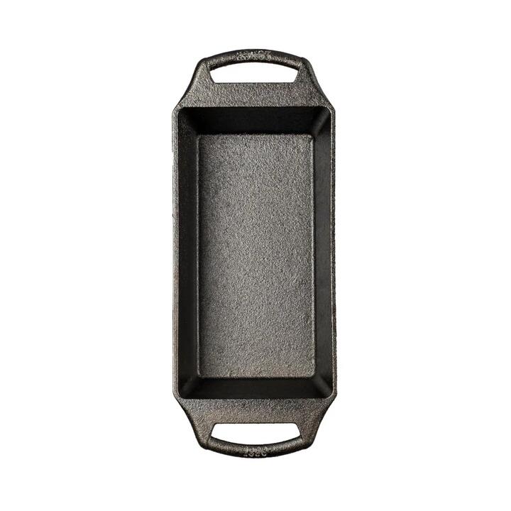 Say goodbye to thumbprints in your dough and hello to easy lifting around the kitchen. Crafted in America with iron and oil, the loaf pans naturally seasoned baking surface won't dent, bend, or warp at high temperatures. The even heating of cast iron helps you achieve the perfect crust and get well-defined edge pieces. Use this loaf pan to help you bake delectable creations in the kitchen. It provides excellent heat distribution and retention for consistent, even baking. Features • Seasoned and ready to use. • Seasoned with 100% natural vegetable oil • Dual handle design • Unparalleled heat retention and even heating • Made in the USA • Use in the oven • Not intended for stovetop use What Am I Buying 1x Loaf Pan Materials Cast iron Dimensions 30.5 x 12 x 7.5cm