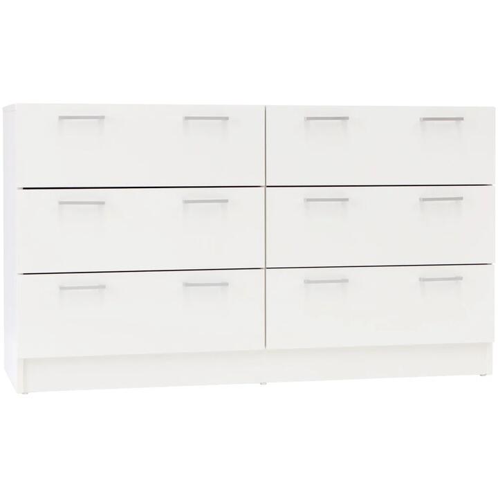 Product Description, An organized home is a great home. The Lorenzo Chest of 6-Drawer Lowboy Sideboard Storage Cabinet gives you a place to store your items and give you piece of mind. Enjoy a beautiful stage for your displays with its wide tabletop. The silver coloured plastic handle give the structure additional detail and contrast. Add it to modern aesthetics to give it full effect. Features, Modern design. 6 drawers for plenty of storage space. White SPU scratch resistant laminated finish. All panels 15mm particle board construction. Drawer base and Backing board 5mm MDF single lamination, White Metal Drawer Runners, U Shape silver coloured plastic handle. Wall Anchoring Bracket or Strap provided for Anti Toppling Safety, Dimensions, Overall Dimensions:, Width: 120.5cm, Depth: 42cm, Depth: 44cm (inc handles), Height: 68.5cm, Internal Drawer Dimensions:, Width: 52.7cm, Depth: 32.7cm, Height: 13.15cm, Drawer Front height: 19.6cm, Colour – White Package Contents:, 1 x 6 Drawer Chest (with parts included for assembly), 1 x Users Guide & Warranty Certificate, Please Note: During the assembly process it is normal to see a small amount of chipping internally. This in no way affects the integrity of the fully assembled product. This furniture needs to be anchored to the wall with the enclosed safety fitting to prevent it from tipping over. Different wall materials require different types of fixing devices. Use fixing devices suitable for the walls in your home, not included. Note:- Actual product colours may vary due to lighting, studio photography, room conditions, different screens on various devices. – All our furniture product are flat pack (assembly required) for safe handling purposes.