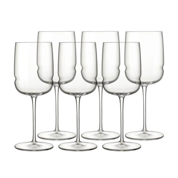 Ideal for serving crisp, clean, or rich and oaky Chardonnay. Introducing innovative and unique Italian designed crystal glass stemware with a sinuous bowl shape. The true aromas of the wine are released in all their glory into the wide aromatic chamber of the stemware allowing the true notes of the wine to be tasted. During the tasting, our wine is delicately directed towards the most sensitive taste buds, ensuring an experience that transcends expectations. The result? A taste without equal that leaves you craving for more. Made from SON. hyx high tech lead-free crystal glass that provides a high resistance to breakages and will keep their brilliance and transparency for over 4000 industrial dishwasher cycles. Luigi Bormioli is a world leader in the art of innovative glassware, a legacy that spans over 25 generations of Italian glassmakers. Combining traditional Italian craftmanship and new-age technology to create premium glassware that is renowned throughout the world. Each glass offers the mark of Italian quality, thoughtful design aesthetics, and crystalline clarity. Features • Innovative and unique Italian designed crystal stemware with a sinuous bowl shape and elegant thin stems. • Made with SON. hyx ultra-clear glass. No alteration in transparency and brilliance over 4000 industrial washing cycles • High-tech blown crystal glass with patented TITANIUM Reinforced, permanent anti-abrasion treatment on the stems. Increasing resistance to breakages by 140%. • Made in Italy using Luigi Bormioli's advanced technology What Am I Buying 6 x Glasses Materials Lead-free crystal glass Capacity 450ml each