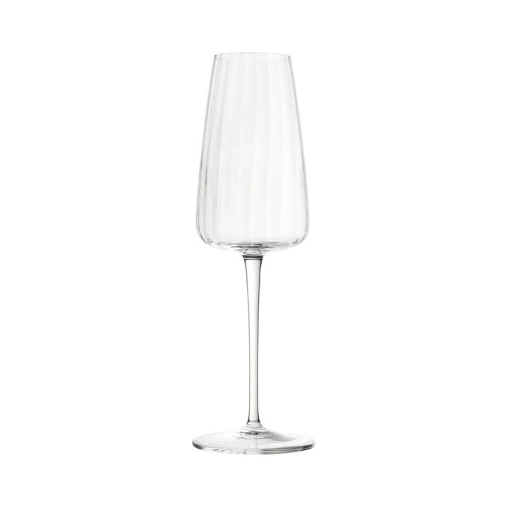 Indulge in the effervescence of your choice, be it sparkling wine, Champagne or prosecco, in the exquisite Luigi Bormioli Optica Set of 4 Flutes 210ml. This collection seamlessly melds elegance with cutting-edge technology. Inspired by the timeless retro charm of the 1920s, the Luigi Bormioli Optica Set of 4 Flutes 210ml features a subtle ribbed design offering a modern twist on a classic look. Crafted from SON. hyx superior lead-free, high-tech blown crystal glass, they deliver exceptional transparency and remarkable resistance to breakage. With the ability to endure over 4,000 industrial wash cycles without losing their brilliance, the Luigi Bormioli Optica Set of 4 Flutes 210ml is both elegant and enduring, perfect for elevating any toast or special celebration. Features The perfect glasses for serving sparkling wine, Champagne or prosecco Each glass offers a capacity of 210ml The Optica collection merges retro features with a new age style Elegant, ribbed design elevates every sip Highly durable SON. hyx crystal glass construction Transparency & brilliance for over 4,000 industrial washing cycles Crafted in Italy since 1946 MaterialLead-free Crystal GlassDimensions15 x 15 x 22.5cmCapacity210mlWhat Am I Buying4 x Flutes