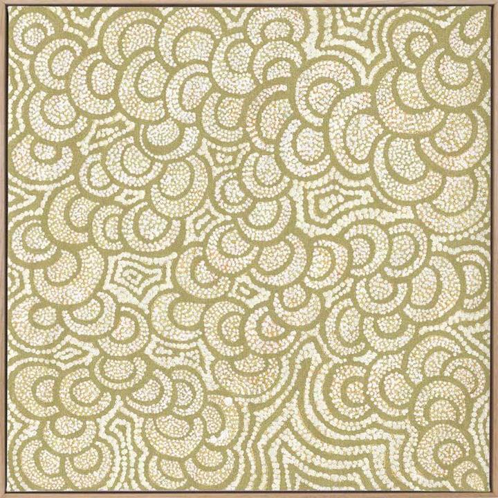 Lukarrara Jukurrpa (Desert Fringe-Rush Seed Dreaming) Gold Canvas Art Print – Featuring a contemporary design reminiscent of graphic art, this Aboriginal Wall Art is a truly captivating piece that will instantly revive your space with a playful feel. This piece was created by a local Aboriginal Artist using traditional Aboriginal Art techniques including many dots that form shapes and lines. A subdued palette of soft golden yellow shades makes it easy to blend with any interior style. Urban Road is committed to investing a stream of ongoing financial support back to our Artist community. For every artwork sold, a percentage of the sale price goes directly back to the Indigenous Artist. Bringing you a brand-new range of traditional Aboriginal art for sale, the sixth instalment to our Aboriginal wall art Australia collection takes an intricate look at Dreamtime storytelling by several coveted Aboriginal artists. Each of these modern Aboriginal artworks have their own story and meaning, with the artists drawing on upon their personal life experiences, exuding strength, resilience, and a profound sense of connection. Immerse yourself in a vibrant spectrum of colours, from bright and warm to subdued, soft and neutral, making this collection an ideal complement to any interior style. The use of striking patterns and shapes bring a vibrant, moving energy to any room, with the option for a framed canvas print to elevate your space. Buy an Aboriginal artwork online today and honour the Aboriginal culture and the remarkable artistic traditions that have shaped generations. Disclaimer: Colours of Urban Road products may vary due to device display differences, monitor settings, inherent product variations, lighting conditions, and screen calibration. While we strive for accuracy, slight variations may occur. For any concerns, contact our customer support. Your satisfaction is our priority. STRETCHED CANVAS Urban Road's stretched canvas fine art prints are professionally printed on polycotton artist canvas, using archival inks and then stretched and gallery wrapped. This means the image is stretched around a 38mm frame to create a seamless, museum-quality finish. All stretched and box framed art prints arrive ready to hang. SHADOW BOX FRAMES We also offer the option to add a shadow box frame to your Urban Road canvas art print. A little different from a traditional framed print, the canvas sits within the box frame with a 5mm gap, creating a sophisticated shadow effect between the frame and the canvas. Our solid timber box frame mouldings are 10mm wide, and 55mm deep, and add approximately 40mm to the length and height of the listed canvas size. ROLLED CANVAS ART At Urban Road, we also offer you the option to purchase your canvas art print unframed to allow you to have it framed your own way. As with our stretched and box framed canvas products, our rolled canvas prints are professionally printed on durable, museum-quality, matte coated polycotton canvas and made to order. Our rolled canvas products are printed to the listed stretched size, and come with an additional 45mm mirrored edge plus another 60mm white border to allow for gallery wrapping.