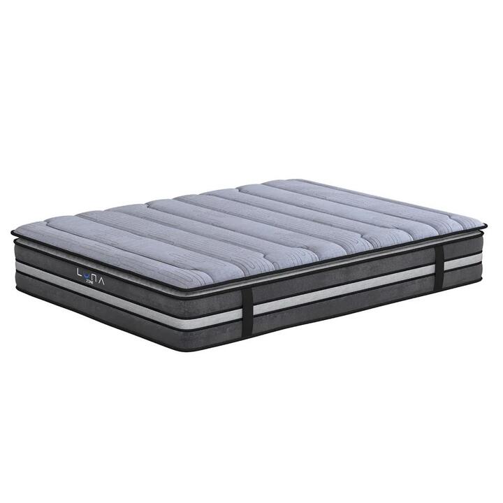 Experience enhanced comfort and support with the Luna-Zone Bamboo Charcoal Pillowtop Mattress. This medium-firm mattress combines natural materials and advanced design for a comfortable and undisturbed sleep. The 5-zone pocket spring system offers motion isolation and targeted pressure relief, while the bamboo charcoal jacquard fabric cover helps regulate temperature for a cooler sleeping environment. With multiple layers, including natural latex and open-cell foam, this mattress provides optimal lumbar support, airflow, and breathability. The side handles allow for easy positioning, and the modern grey and black design adds a stylish touch. Features • Advanced 5-Zone Pocket Spring Support: Designed to provide targeted lumbar support, the 5-zone pocket spring system adapts to your body's contours for maximum comfort and pressure relief. • Bamboo Charcoal Infused Cover for Cooling Comfort: The charcoal jacquard fabric cover helps regulate temperature and wick away moisture, ensuring a cool and restful sleep throughout the night. • Comfort with Natural Latex and Open-Cell Foam: A blend of natural latex and open-cell foam enhances airflow and relieves pressure points, providing exceptional support for all sleeping positions. • Medium-Firm Support for Balanced Comfort: Perfectly balancing softness and firmness, this mattress provides excellent spinal alignment and reduces aches and pains for a deep, rejuvenating sleep. Delivery Note Mattress is shipped compressed, rolled, and boxed for easy setup. It will expand to its full shape within approximately 24 hours after unpacking. This item cannot be delivered to a PO Box, only to a street address – a return fee will be charged if product/s are sent to a PO Box. Change of mind returns are typically not accepted but are considered on a case-by-case basis. Return to sender & change of mind return products are applicable to 15% nominal restocking fees which will be deducted prior to refund. Due to health and hygiene reasons, mattresses, quilts, underblankets, pillows and toppers are non-refundable. For more information view our terms and conditions. What Am I Buying 1 x Luna-Zone Mattress Materials Charcoal Jacquard Fabric / Natural Latex / Open-Cell Foam with Air Channels / Comfort Orthopaedic Foam/ Tempered-Steel Pocket Spring Coil Mattress Size and Dimensions • Single: 92cm x 187cm x 30cm • King Single: 107cm x 203cm x 30cm • Double: 137cm x 187cm x 30cm • Queen: 153cm x 203cm x 30cm • King: 183cm x 203cm x 30cm Box Package Dimensions• Single: 100cm (L) x 32cm (H) x 32cm (W) / 24kg • King Single: 115cm (L) x 32cm (H) x 32cm (W) / 30kg • Double: 147cm (L) x 32cm (H) x 32cm (W) / 35kg • Queen: 160cm (L) x 32cm (H) x 32cm (W) / 40kg • King: 190cm (L) x 32cm (H) x 32cm (W) / 47kg