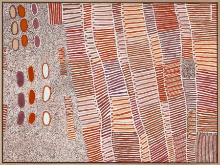 Lupul Jukurrpa Red Canvas Art Print – An eye-catching array of straight lines and oval shapes make this a unique Indigenous Aboriginal artwork piece to liven up any wall. An energetic, rich palette of purple, pink, yellow and red-orange are set off by the intricate dot painting in the lower half. A contemporary take on nature and its many complexities. Helen Reed has painted a Jukurrpa (dreaming) related to water. This story is associated to a rock-hole site, Lupul south of Kintore. The Jukurrpa tells the story of the rainbow serpent travelling through the country creating large storms, with the storms the land flourishes creating the flora and fauna. Urban Road is committed to investing a stream of ongoing financial support back to our artist community. For every artwork sold, a percentage of the sale price goes directly back to the artist. Disclaimer: Colours of Urban Road products may vary due to device display differences, monitor settings, inherent product variations, lighting conditions, and screen calibration. While we strive for accuracy, slight variations may occur. For any concerns, contact our customer support. Your satisfaction is our priority. STRETCHED CANVAS Urban Road's stretched canvas fine art prints are professionally printed on polycotton artist canvas, using archival inks and then stretched and gallery wrapped. This means the image is stretched around a 38mm frame to create a seamless, museum-quality finish. All stretched and box framed art prints arrive ready to hang. SHADOW BOX FRAMES We also offer the option to add a shadow box frame to your Urban Road canvas art print. A little different from a traditional framed print, the canvas sits within the box frame with a 5mm gap, creating a sophisticated shadow effect between the frame and the canvas. Our solid timber box frame mouldings are 10mm wide, and 55mm deep, and add approximately 40mm to the length and height of the listed canvas size. ROLLED CANVAS ART At Urban Road, we also offer you the option to purchase your canvas art print unframed to allow you to have it framed your own way. As with our stretched and box framed canvas products, our rolled canvas prints are professionally printed on durable, museum-quality, matte coated polycotton canvas and made to order. Our rolled canvas products are printed to the listed stretched size, and come with an additional 45mm mirrored edge plus another 60mm white border to allow for gallery wrapping.