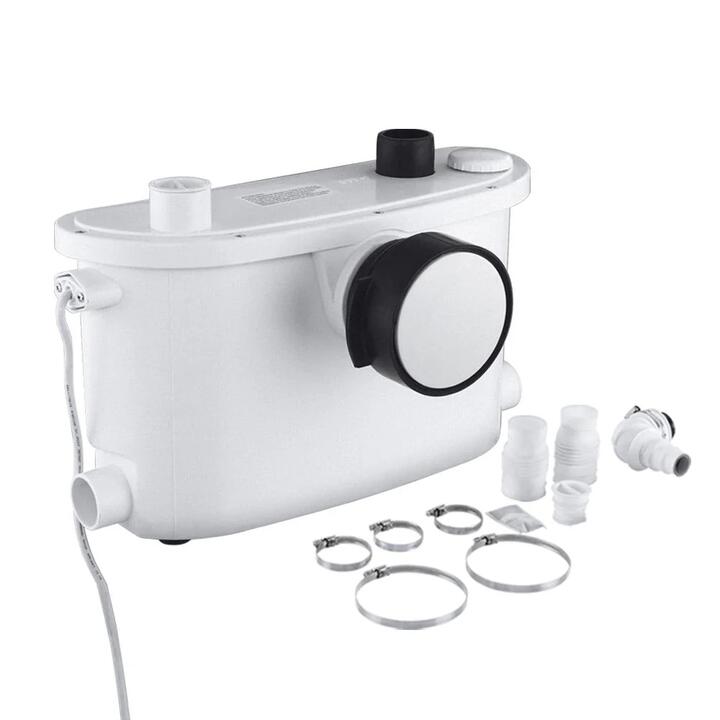 Looking to do some renovations and want to add a bathroom but the existing waste system is too far? With our Macerator Pump that can pump up to 7m vertically and 60m horizontally, you can create a wet area anywhere you want. The 400W pump features four inlets that enable you to connect to four sanitary devices such as your toilet, washbasin, shower and bathtub altogether to complete a bathroom where conventional drainage would be too expensive to consider. It is quiet in operation and fully automatic when activated by flushing. The tough stainless steel blade allows for ultra-fine cutting, ensuring that waste is properly chopped up and able to be discharged through tiny pipework back to the existing sewer connection. Features:, Genuine commercial macerator pump, Fully automated operation triggered by flushing, Quiet and powerful 400W motor, Stainless steel impeller blades, Massive 270L/min capacity, Four inlets, Pumps up to 7m vertically, Pumps up to 60m horizontally, Non-return valve, Superior quality seals, Good heat dissipation, Hose clamps, Blanking caps, Specifications:, Inlets: 4, Voltage: 230V/50Hz, Motor power: 400W, Maximum flow: 270L/min, Vertical pumping: up to 7m, Horizontal pumping: up to 60m, Max. ambient temperature: 90°C, Cable: 1.2m, Dimensions: 45cm x 10cm x 26cm, Package Contents:, 1 x Macerator Pump, 5 x Hose Clamps, 5 x Blanking Caps, 1 x User Manual. Note:- Actual product colours may vary due to lighting, studio photography, room conditions, different screens on various devices.