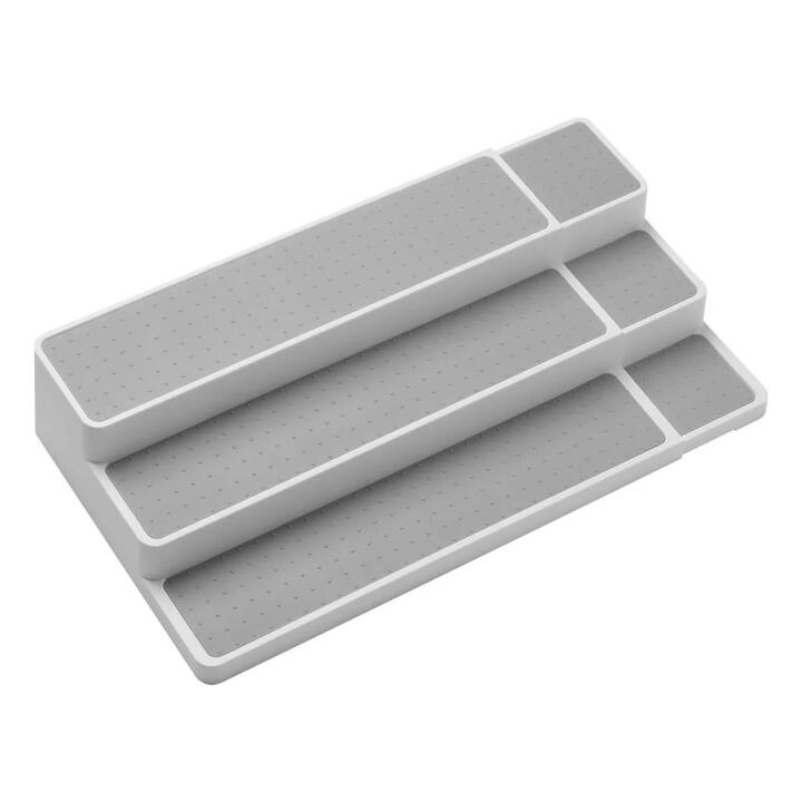 The expandable shelf organiser by madesmart is the perfect solution for maintaining and organising the kitchen pantry. The organiser expands and contracts to better fit your space and is perfect for organising items like spices, cans, or jars, with the 3-tier design making viewing easy. Features • 3-tier • Expands to 65.7cm • Non-slip feet • Soft-grip lining • Expands to fit shelves What Am I Buying 1 x Pantry organiser Materials High-quality, BPA-free plastic