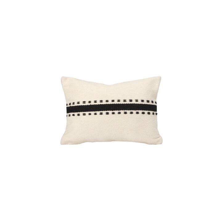 The Madre Indoor / Outdoor Cushion is simple and its bold design is a beautifully easy pairing for either your in-house sanctuary or outdoor oasis. It's versatility and timeless nature give monochrome enduring appeal, Made from 100% PET fabric, Crafted from recycled plastic bottles, Lined with finer double-line stitches, Fuse textures and patterns, Your purchase is a conscious one with the Madre Indoor / Outdoor Cushion . Made from 100% PET fabric, Madre is sustainably crafted from recycled plastic bottles and is beneficially durable, low maintenance and can weather outdoor conditions. Not just a beauty in nature's eyes, but can also sit safely within your backyard landscape. Madre's standout feature is its bold line work. A thick central stripe horizontally across its surface is lined with finer double-line stitches above and below. Quality and comfort design, This design purposefully plays with light and dark, thick and thin and the essence of contrast to create a visual sense of balance. For an effortlessly considered look to where you lounge, it's the layering of cushions that finish a living space. Fuse textures and patterns with more muted, simple surfaces in varying sizes for the ultimate combination. Pair Madre with a larger square cushion in simple natural linen and even a little boucle for some textural dimension as the perfect trio. Dimension, 35 x 6 x 50cm. Note:- Actual product colours may vary due to lighting, studio photography, room conditions, different screens on various devices.