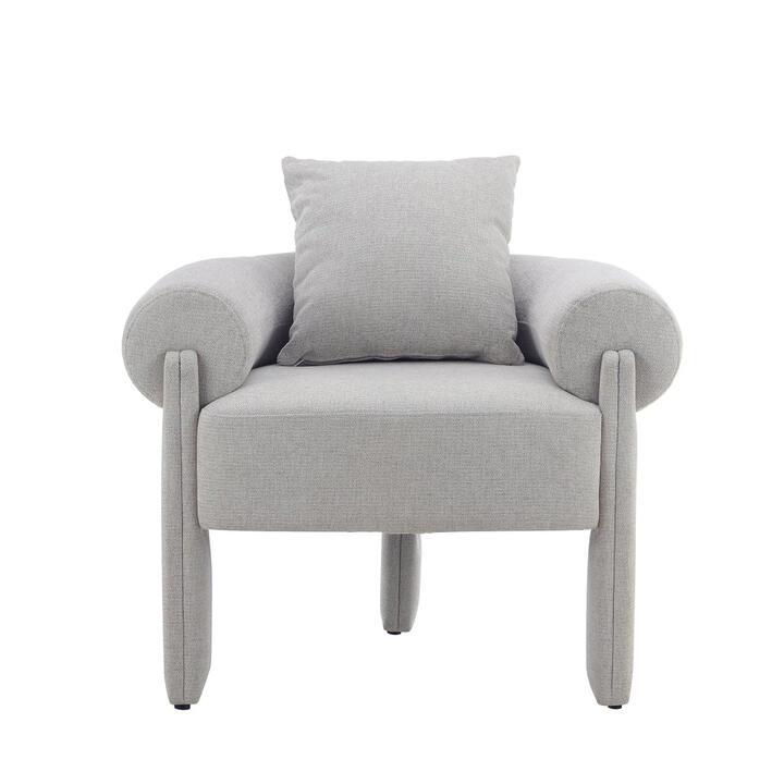 Enjoy a perfect blend of style, comfort, and ergonomic design with the Cordelia Armchair. Its gently rounded curves and plush, welcoming form create an inviting spot to relax after a long day. With a sculptural silhouette that makes a statement in any room, the Star Armchair adds softness and sophistication to your interior while delivering everyday comfort. Features, Quality Construction: Made with a sturdy blend of polyester upholstery, metal, and plywood for long-lasting use. Stylish Set: Includes 1x armchair and 1x cushion, both designed for comfort and visual harmony. Modern Silhouette: Showcases rounded arms and legs that bring an artistic, contemporary edge to your decor. Textured Upholstery: Wrapped in a soft, textured fabric that complements both neutral and earthy interiors. Lounge-Worthy Comfort: Thick seat padding and a removable plush back pillow provide exceptional support and relaxation. Durable Build: Reinforced by a solid frame and robust upholstered legs for reliable everyday use. Versatile Accent Piece: Perfect for living rooms, bedrooms, or reading nooks as a cozy and elegant seating option. Dimensions, W 86.3 x D 77 x H 90.5 cm, Dispatch Timing, Normally dispatched within 3 business days, Notes. Note:- Actual product colours may vary due to lighting, studio photography, room conditions, different screens on various devices. – All our furniture product are flat pack (assembly required) for safe handling purposes.