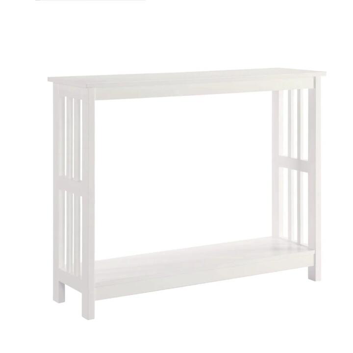 Enhance your living space with the elegant and functional console table, designed to complement any existing décor with its clean lines and stylish design. This versatile piece not only adds aesthetic appeal but also offers practical storage solutions to accommodate your daily lifestyle. The bottom shelf provides ample space to display collectibles or store everyday necessities for easy access, making it a perfect addition to your home. Features, Durable Construction : Made from 95% particle board and 5% MDF, our console table ensures robust and long-lasting durability. This high-quality construction provides a stable and reliable surface for your belongings. Elegant White Wood Finish : Finished with a beautiful white wood finish, this console table adds a touch of sophistication to any room. Its sleek and stylish design fits seamlessly with a variety of home décor styles, enhancing the aesthetic of your space. Ample Storage Space : Featuring a bottom shelf, this console table offers additional storage space for displaying collectibles, decorative items, or storing everyday necessities. Keep your living area organized and clutter-free with this convenient feature. Quick and Easy Setup : Designed for ease and convenience, the console table comes with all necessary tools for a quick and straightforward assembly. Spend less time assembling and more time enjoying your new furniture piece. Versatile Use : Whether used in your living room, entryway, or hallway, this console table's practical design and elegant look make it a versatile addition to any home. Its clean lines and functional storage space ensure it complements any existing décor while providing practical storage solutions. Dimensions, W 100 x D 30 x H 80 cm, Dispatch Timing, Normally dispatched within 3 business days, Notes. Note:- Actual product colours may vary due to lighting, studio photography, room conditions, different screens on various devices. – All our furniture product are flat pack (assembly required) for safe handling purposes.