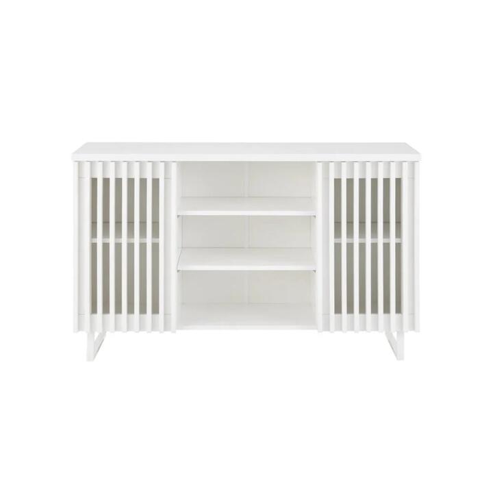 Save space in style with this buffet that boasts open storage shelves and spacious cabinets that are suitable for all your storage needs. Buffet, 3 Open adjustable storage shelves, 2 Open slotted panel cabinets, Coastal and contemporary look, Anti-fall strap for added stability, Made from hollowcore MDF wood, From storing plates and cutlery to neatly displaying ornaments and books, the Manila Buffet is perfect for any area with ample shelving and cabinet space with a contemporary look and feel. Perfect for dining storage, Make it the feature for your dining storage or use it as a decorative display in a hallway or bedroom thanks to the buffet's versatility, so you can store your belongings wherever you need. Coastal look and feel, Embrace a coastal and modern style design with open slotted cabinet doors to complement the MDF wooden panels that give your dining set-up a futuristic look. Dimensions : W 120 x D 39 x H 73 cm. Note:- Actual product colours may vary due to lighting, studio photography, room conditions, different screens on various devices. – All our furniture product are flat pack (assembly required) for safe handling purposes.