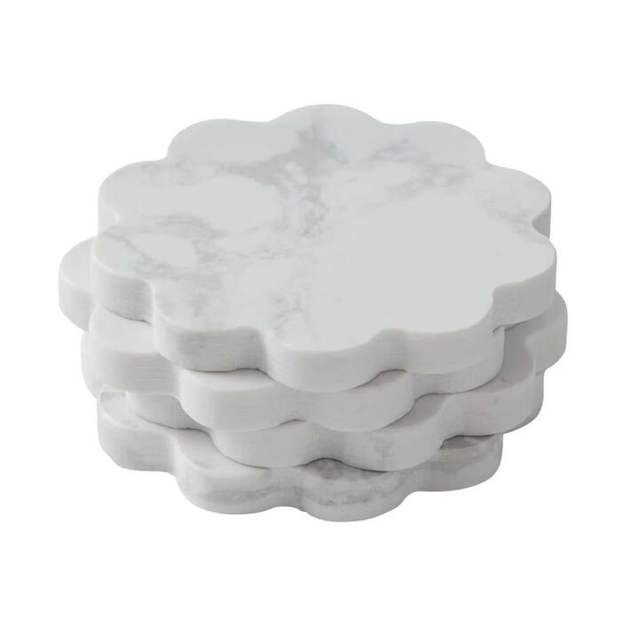 Set a sophisticated and inviting table for your friends, family and guests to enjoy a delicious drink with the Marie Claire Laguiole Domain Set of 4 Marble Coasters. These beautiful coasters are crafted from the finest quality reconstituted marble with a rich elegant finish that adds a touch of modern sophistication to any table setting. Marie Claire Laguiole Domain Coasters are suitable for serving a wide assortment of drinks, such as coffee, tea, wine and more. The Marie Claire Laguiole Domain is a harmonious blend of modern and classic; an elevated serving piece to enhance your everyday dining. Features • Entertain with family and friends in elegant style• Crafted from the finest reconstitutedmarble for long lasting results• Adds a touch of modern sophistication to any table setting• Protect your tabletops from heat, spillage, or ring marks• Contemporary flower silhouettes and a natural grey appearance• Hand wash only• Shop the Marie Claire Laguiole Domain collection for more elegant serveware pieces What Am I Buying 4 x Coasters Materials Reconstituted Marble Dimensions 11cm diameter