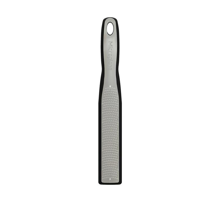 The Microplane Elite Series is designed with versatility and ease of use in mind. Includes a cover/ catcher which also includes a measuring feature to make prepping ingredients mess-free and even easier than ever The Microplane Elite Series is designed with versatility and ease of use in mind. Features • Includes a cover/ catcher which also includes a measuring feature to make prepping ingredients mess-free and even easier than ever• Microplane graters feature photo-etched blade technology, ensuring effortless grating for superior results, cutting foods precisely without ripping or shredding• Ergonomic handle for stability and comfort, to maximise efficiency during use; as well as safe storage and blade protection• Ideal for grating citrus rind of lemons, limes and oranges as well as spices including ginger, nutmeg, cinnamon and more Materials Stainless Steel Dimensions 31.7cm x 5cm xv3.1cm