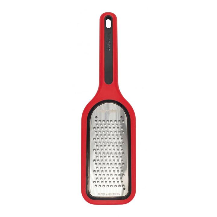 VALID ONLINE ONLY. Glide through food prep with the Microplane Select Series Coarse Grater Red. Perfect for grating hard or soft cheeses, fruits and vegetables, the Microplane Select Series Coarse Grater Red makes a practical addition to your kitchen with the added bonus of a sleek visual design. With premium quality, surgical grade stainless steel blade made in the USA, it quickly and effortlessly glides through ingredients without tearing. Designed for professional and home cooks alike, this efficient grater minimises hand fatigue thanks to its unbelievably sharp blade. Featuring a stylish red frame, the grater boasts a TPE inset for a non-slip grip and comes complete with a clear plastic cover for safe storage inside drawers. Whether its shredded cheese to top pizzas or pastas or grated carrot for salads the Microplane Select Series Coarse Grater Red has your covered. Features• Ideal for grating fruits, vegetables and hard and soft cheeses• Surgical grade stainless steel blade crafted in the USA• Ergonomic plastic handle with non-slip grip for safety• Dishwasher safe for effortless cleaning after use• Comes with a plastic cover for safe drawer storage• Contemporary red colour makes a statement in the kitchenDimensions8.5 x 2 x 28cmCare InstructionsDishwasher Safe / Handwash coverMaterialsStainless Steel, ABS, TPE