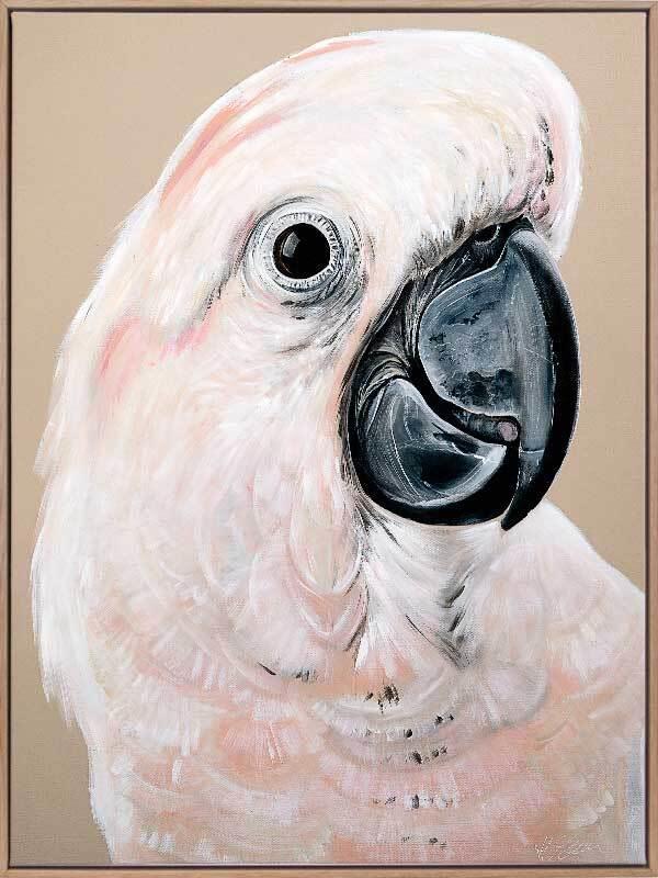 Moluccan Cockatoo Canvas Art Print – A soft, closeup study of a lively Moluccan Cockatoo, this artwork features intricate details with a neutral colour palette. Gazing deep into its eye, we see this cockatoo's playful nature, with a simple beige background and soft pink tones that will suit many interior design styles. Self-taught artist Heylie Morris brings her dynamic collection of animals and female figures to Urban Road, focusing on the playfulness of Australian cockatoos and other native birds, as well as the majestic, powerful beauty of tigers, leopards and jaguars. This collection uses unique blends of colours and shapes, focusing on graphic brush strokes, detailed designs, and impactful colour palettes. Her rendition of the Australian Black Cockatoo is a particular standout, with beautifully detailed imagery and rich, vibrant colours. Disclaimer: Colours of Urban Road products may vary due to device display differences, monitor settings, inherent product variations, lighting conditions, and screen calibration. While we strive for accuracy, slight variations may occur. For any concerns, contact our customer support. Your satisfaction is our priority. STRETCHED CANVAS Urban Road's stretched canvas fine art prints are professionally printed on polycotton artist canvas, using archival inks and then stretched and gallery wrapped. This means the image is stretched around a 38mm frame to create a seamless, museum-quality finish. All stretched and box framed art prints arrive ready to hang. SHADOW BOX FRAMES We also offer the option to add a shadow box frame to your Urban Road canvas art print. A little different from a traditional framed print, the canvas sits within the box frame with a 5mm gap, creating a sophisticated shadow effect between the frame and the canvas. Our solid timber box frame mouldings are 10mm wide, and 55mm deep, and add approximately 40mm to the length and height of the listed canvas size. ROLLED CANVAS ART At Urban Road, we also offer you the option to purchase your canvas art print unframed to allow you to have it framed your own way. As with our stretched and box framed canvas products, our rolled canvas prints are professionally printed on durable, museum-quality, matte coated polycotton canvas and made to order. Our rolled canvas products are printed to the listed stretched size, and come with an additional 45mm mirrored edge plus another 60mm white border to allow for gallery wrapping.