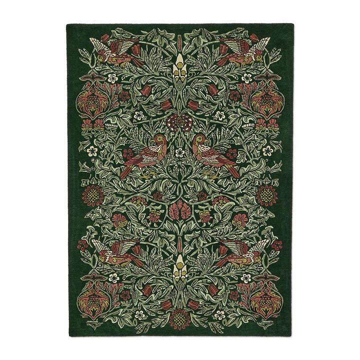 Emerging from the illustrious legacy of Morris & Co, a design house founded in 1861 by the visionary William Morris, the Bird Tump Green rug is a testament to enduring artistry. Its symmetrical floral design, richly adorned with intricate foliage and delicate birds, is enveloped in a lush, dark green shade that unfolds in a uniquely distinctive colour palette. This rug brings a profound touch of heritage and vintage charm to your living space. Hand-tufted in India from 100% pure new wool, it resonates with Morris & Co's unwavering dedication to quality and craftsmanship, echoing a tradition that spans over a century. Features • Botanical designer rug • Made from 100% Pure New Wool – easy to care for • Available in 4 sizes and 2 colours to fit into any room of your home or office • Hand Tufted – Pile height 17mm • Made in India • Please note: Allow for a slight variation of colours depending on monitor settings. • We recommend that an anti-slip pad such as Total Grip is used underneath rugs to prevent slippage between the rug and the surface it is placed on. Delivery Note This item is Made to Order with an estimated delivery time of 3 – 4 weeks. This item cannot be delivered to a PO Box, only to a street address – a return fee will be charged if rugs are sent to a PO Box. What Am I Buying 1 x Rug Materials 100% Pure New Wool Dimensions• 200 x 140cm• 240 x 170cm • 280 x 200cm • 350 x 250cm