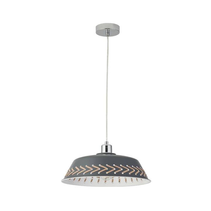 Enhance your interior with the Neveah Modern Hanging Pendant Light Lamp. Featuring a sleek metal shade in a sophisticated grey finish, this pendant light exudes contemporary elegance. The minimalist design and neutral color make it a versatile addition to any space, while the grey shade softens the light for a warm and inviting atmosphere. Perfect for kitchens, dining areas, or living rooms, the Neveah adds a touch of modern style with effortless charm. Features: , Base/Fixture Material: Iron, Base/Fixture Colour: Grey, Is Shade Included: Yes, Shade Material: Iron+leather, Shade Colour: Grey, Bulb Base Type: E27, Number of Lights: 1, Wattage: MAX 60W Each (NOT INCLUDED), Is Bulb Included: No, Power Source: Hardwired, Voltage Input: 240V, Box Content: 1 x pendant light, IP Rating: IP20 (Indoor Use Only), Cord/Chain Length (cm): 150, Install: Must be installed by a qualified electrician, Care Instruction: Wipe Clean with a Dry Cloth, Product Dimensions (cm): H 160 W 36 D 36, Product Weight(kg): 0.9. Note:- Actual product colours may vary due to lighting, studio photography, room conditions, different screens on various devices.