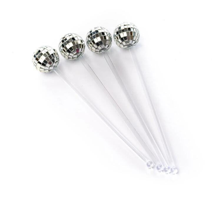 Stir up some groovy vibes with this NPW Set of 4 Disco Drink Stirrers. Disco ball sparkles atop an elegant metal silver drink stirrer. Perfect for a disco cocktail party! Features• Add some sparkle to your next cocktail party. These fun drink stirrers are the perfect cocktail accessory for cocktail lovers or mixologists • Set of 4 Silver Stirrers – Perfect for cocktail parties, adding style to every drink. • Ideal Cocktail Accessory – Great for mixologists and anyone who loves a bit of sparkle in their glass What Am I Buying 4 x Drink stirrers Materials Plastic