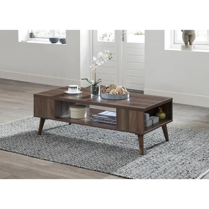The Coffee Table is thoughtfully crafted with a durable combination of board and plywood construction, providing both strength and a sleek appearance. Its stylish design is enhanced by the rich AMC Columbia Walnut finish, adding a sophisticated touch to your living space. Perfect for any sitting area, this coffee table offers convenient support for beverages, remote controls, magazines, books, and more. The versatile design makes it an excellent addition to your living room, entertainment room, or lobby, bringing together practicality and refined style to elevate your space. Features:, Durable Construction: Made from a combination of board and plywood for lasting durability and strength. Sophisticated Design: Rich AMC Columbia Walnut finish for a touch of elegance and contemporary appeal. Functional Support: Perfectly designed to hold beverages, remote controls, magazines, and books, keeping essentials within reach. Versatile Use: Ideal for the living room, entertainment room, lobby, or any space that requires both style and function. Easy Maintenance: E2 particle board construction with a vinyl wrap ensures easy cleaning and long-term durability. Dimensions, W 107.5 x D 50.5 x H 36.5 cm, Dispatch Timing, Normally dispatched within 3 business days, Notes. Note:- Actual product colours may vary due to lighting, studio photography, room conditions, different screens on various devices. – All our furniture product are flat pack (assembly required) for safe handling purposes.