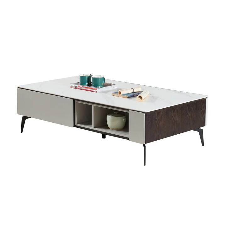Create the best looking living room setup that is streamlined. The Lucinda Coffee Table offers a sleek space in your living room for storage of smaller items. The sintered stone look adds a sleek detail to your living area. The contrasting colours give a great look for many designs and interiors. Features, Constructed from premium sintered stone and MDF, Amazing open storage options, Sleek modern aesthetic, Complements a variety of popular interior styles from provincial to Scandinavian for your convenience, Made with tapered legs for a well-balanced shape, Dimensions, W 130 x D 70 x H 42 cm, Dispatch Timing, Normally dispatched within 3 business days, Notes, This item is applicable for 7-Days change of mind policy only. Note:- Actual product colours may vary due to lighting, studio photography, room conditions, different screens on various devices. – All our furniture product are flat pack (assembly required) for safe handling purposes.
