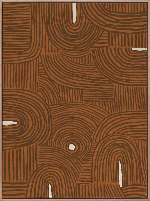 Pathways Canvas Art Print – All of us are on our own path, but many of us meet those we love along the way. A mesmerizing abstract piece, this artwork features detailed linework, compiled to form a random pattern, no two lines the same to bring a relaxed look and feel. Palette includes a terracotta brown backdrop, with brown lines and touches of creamy white. Days of Delilah Collection features bold, brave and beautiful feminine figures. Earthy terracotta orange, indigo blue, and soft mixes of olive and stone fill the canvas, illuminating your home. Disclaimer: Colours of Urban Road products may vary due to device display differences, monitor settings, inherent product variations, lighting conditions, and screen calibration. While we strive for accuracy, slight variations may occur. For any concerns, contact our customer support. Your satisfaction is our priority. STRETCHED CANVAS Urban Road's stretched canvas fine art prints are professionally printed on polycotton artist canvas, using archival inks and then stretched and gallery wrapped. This means the image is stretched around a 38mm frame to create a seamless, museum-quality finish. All stretched and box framed art prints arrive ready to hang. SHADOW BOX FRAMES We also offer the option to add a shadow box frame to your Urban Road canvas art print. A little different from a traditional framed print, the canvas sits within the box frame with a 5mm gap, creating a sophisticated shadow effect between the frame and the canvas. Our solid timber box frame mouldings are 10mm wide, and 55mm deep, and add approximately 40mm to the length and height of the listed canvas size. ROLLED CANVAS ART At Urban Road, we also offer you the option to purchase your canvas art print unframed to allow you to have it framed your own way. As with our stretched and box framed canvas products, our rolled canvas prints are professionally printed on durable, museum-quality, matte coated polycotton canvas and made to order. Our rolled canvas products are printed to the listed stretched size, and come with an additional 45mm mirrored edge plus another 60mm white border to allow for gallery wrapping.