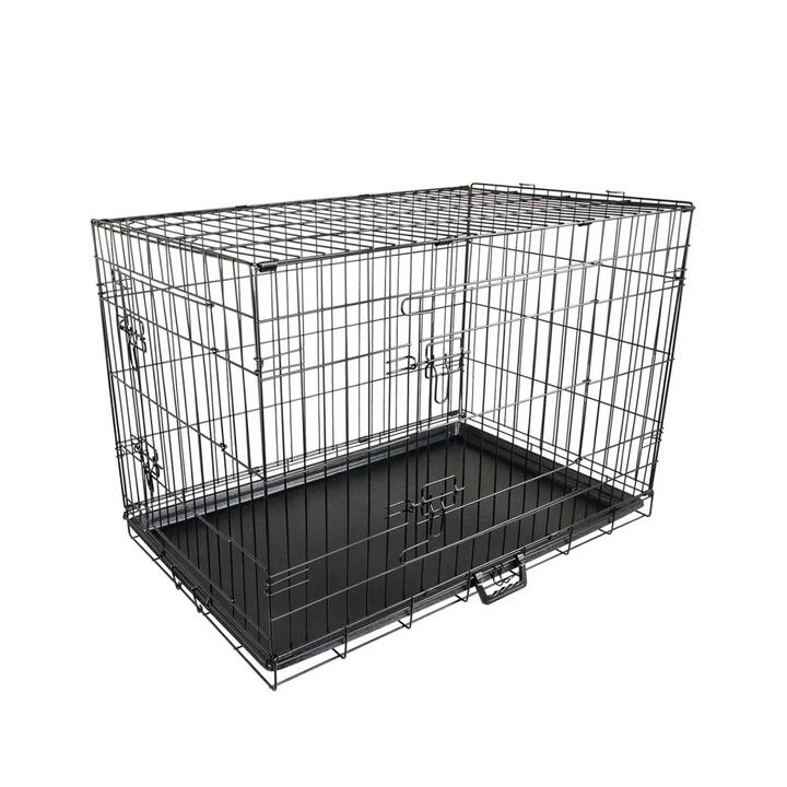 Paw Mate Wire Dog Cage Foldable Crate Kennel 36in with Tray Reduce housebreaking time and help resolve barking, chewing, and behavioural problems with this collapsible dog crate!, This convenient wire dog crate feature double access doors that provide easy access for your dog to easily enter and exit, as well as dual safety locks on each door to keep your pup securely inside. Built with quality sturdy wire construction with black powder-coated finish. The slide-out / removable plastic tray for easy cleaning. This collapsible wire dog crate are perfect for dogs that are constantly on the go as they require no assembly. They also set up in seconds without assemble or any tools require and fold flat for compact storage and travel. Product Features:, Durable steel frames with black powder coated finish provides Long Lasting Protection and weather resistance, Simple set up in seconds without assemble or any tools require, Fold flat for compact storage and travel, Double Access Doors – Front side door opening, Access Door's Lock with Secure Lock system which can be only unlocked when it facing upward, Slide-Out / Removable plastic Tray – Easy to clean, Design with better ventilation and air circulation, SGS Approved ensured safety for your pet, Product Included:, 1x 36in Dog Crate, Product Specification: Brand: Paw Mate, Colour: Black, Material: Steel Frame, Finishing: Powder Coated, Crate Dimension: 90cm(36in) x 57cm x 63cm (L x W x H), Fold up Dimension: 90cm(36in) x 57cm x 9cm (L x W x H), Front Door Dimension: 41cm x 42cm (W x H), Side Door Dimension: 34cm x 47cm (W x H), Bar distance: 3.5cm, Weight: 8.5kg. Note:- Actual product colours may vary due to lighting, studio photography, room conditions, different screens on various devices.
