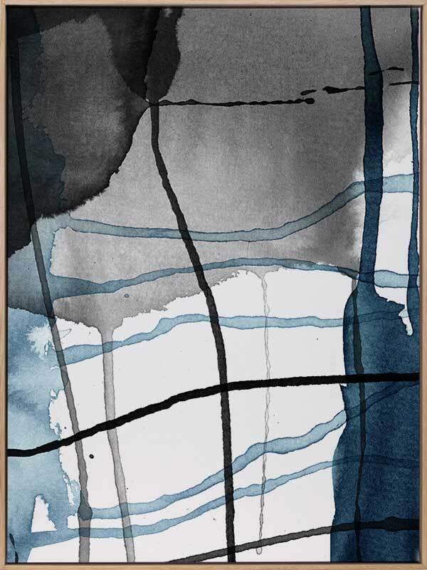 Perpetual Winter Canvas Art Print: A multi-layered abstract artwork showcasing cool toned blue and black watercolour splashes and drips. Pairs with Eternal Winter. 2018 AUTUMN/WINTER COLLECTION: CONTINUUM Disclaimer: Colours of Urban Road products may vary due to device display differences, monitor settings, inherent product variations, lighting conditions, and screen calibration. While we strive for accuracy, slight variations may occur. For any concerns, contact our customer support. Your satisfaction is our priority. STRETCHED CANVAS Urban Road's stretched canvas fine art prints are professionally printed on polycotton artist canvas, using archival inks and then stretched and gallery wrapped. This means the image is stretched around a 38mm frame to create a seamless, museum-quality finish. All stretched and box framed art prints arrive ready to hang. SHADOW BOX FRAMES We also offer the option to add a shadow box frame to your Urban Road canvas art print. A little different from a traditional framed print, the canvas sits within the box frame with a 5mm gap, creating a sophisticated shadow effect between the frame and the canvas. Our solid timber box frame mouldings are 10mm wide, and 55mm deep, and add approximately 40mm to the length and height of the listed canvas size. ROLLED CANVAS ART At Urban Road, we also offer you the option to purchase your canvas art print unframed to allow you to have it framed your own way. As with our stretched and box framed canvas products, our rolled canvas prints are professionally printed on durable, museum-quality, matte coated polycotton canvas and made to order. Our rolled canvas products are printed to the listed stretched size, and come with an additional 45mm mirrored edge plus another 60mm white border to allow for gallery wrapping.