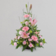 A respectful celebration of life, this floral tribute is a meaningful way to express your thoughts. Beautiful soft pink and white flowers like white disbud mums, pink lilies, alstroemeria and freesia, combined with stunning green gum and viburnum in a unique box, ideal for delivery to home or service.