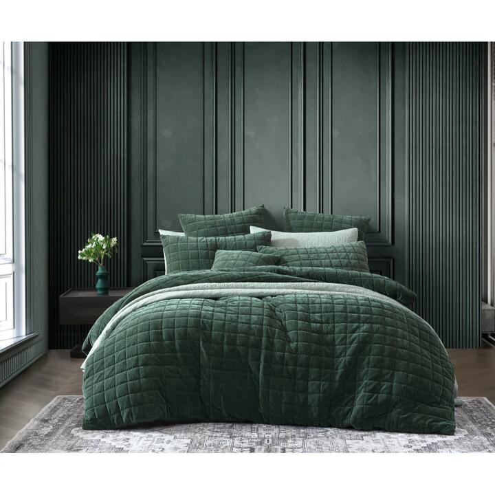 The Platinum Collection Apollo Quilt Cover Set effortlessly combines sophistication, style, and elegance. Crafted from plush chenille velvet, it offers a luxuriously soft feel. The simple check pattern is accentuated by a delicate wave stitch, while bold royal hues of cilantro green and plum purple add a vibrant pop of colour to any interior. Features• A classic quilt cover set suitable for every bedroom• Choose from 2 on-trend hues – Plum and Cilantro• Available n Queen and King sizes• Machine washableWhat Am I Buying• 1 x Quilt Cover• 2 x Standard PillowcasesMaterialsCottonDimensionsRefer to size guide